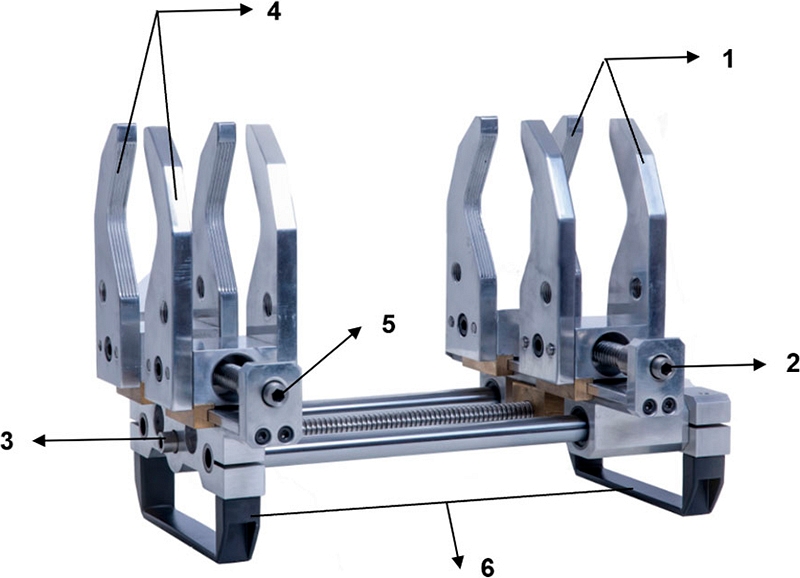3. Шпиндель для перемещения зажимов вдоль оси