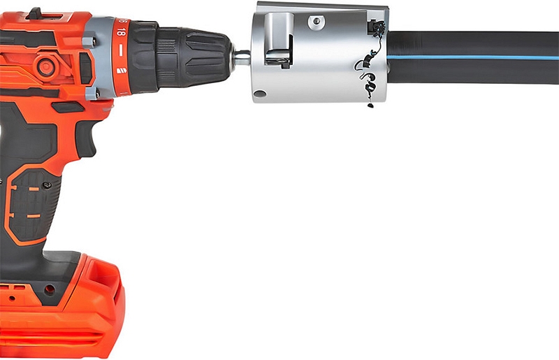 Устройство для снятия оксидного слоя с полиэтиленовых труб Gas Fusion УСО-75 (Газ Фьюжин USO-75) – скребок под дрель или шуруповерт для эффективной зачистки полиэтиленовых (пэ, пнд) труб Ø 75 мм перед муфтовой раструбной и электромуфтовой сваркой в стесненных условиях ограниченного пространства.